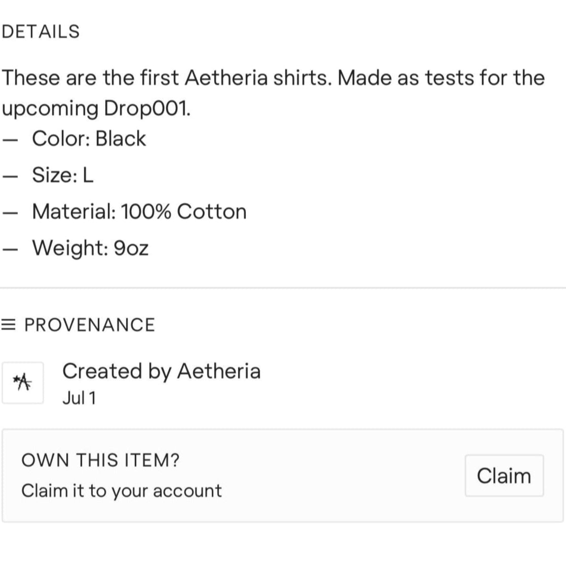 Reselling just got smarter. Every Aetheria shirt comes with a built-in NFC chip that proves it's real — no fakes, no guesswork. When you sell your piece on Grailed, StockX, or anywhere else, the buyer can instantly verify it's legit by scanning the chip. Once they receive it and scan, the NFT can be transferred to them. No need to trust a seller, no need to worry about scams. It's resale with blockchain-backed receipts — making your Aetheria piece not just a flex, but an asset.